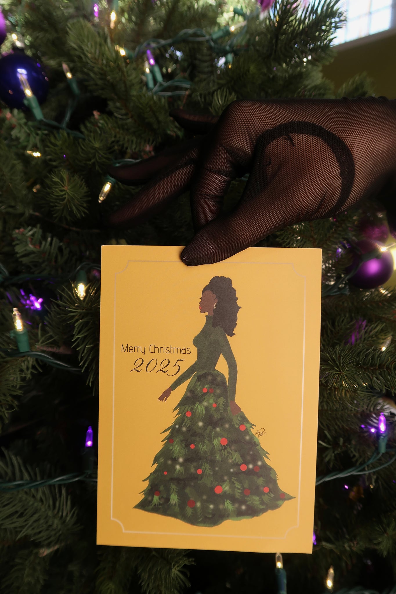 A stunning 4.6” x 7.2” greeting card of a Christmas tree-inspired design. Perfect for a special message to a loved one.